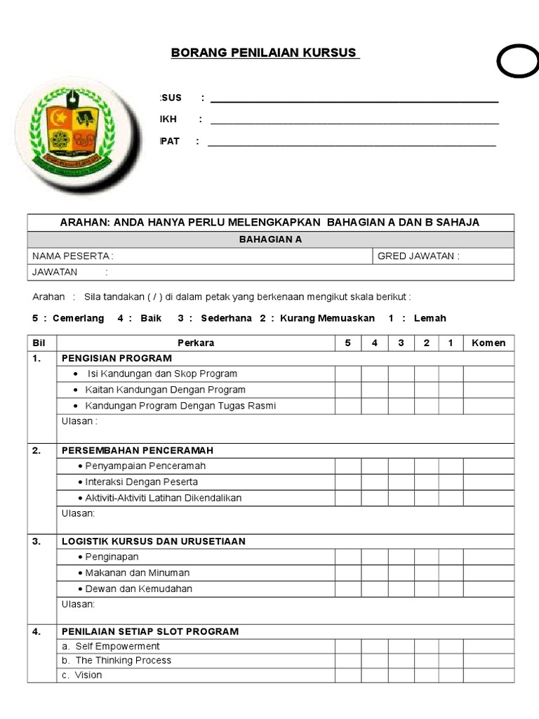 Sebarang permohonan tuntutan kewangan perlu dibuat dlm tempoh 30. Contoh borang kaji selidik program motivasi pendidikan. Sila BULATKAN pada skala yang berkenaan.
