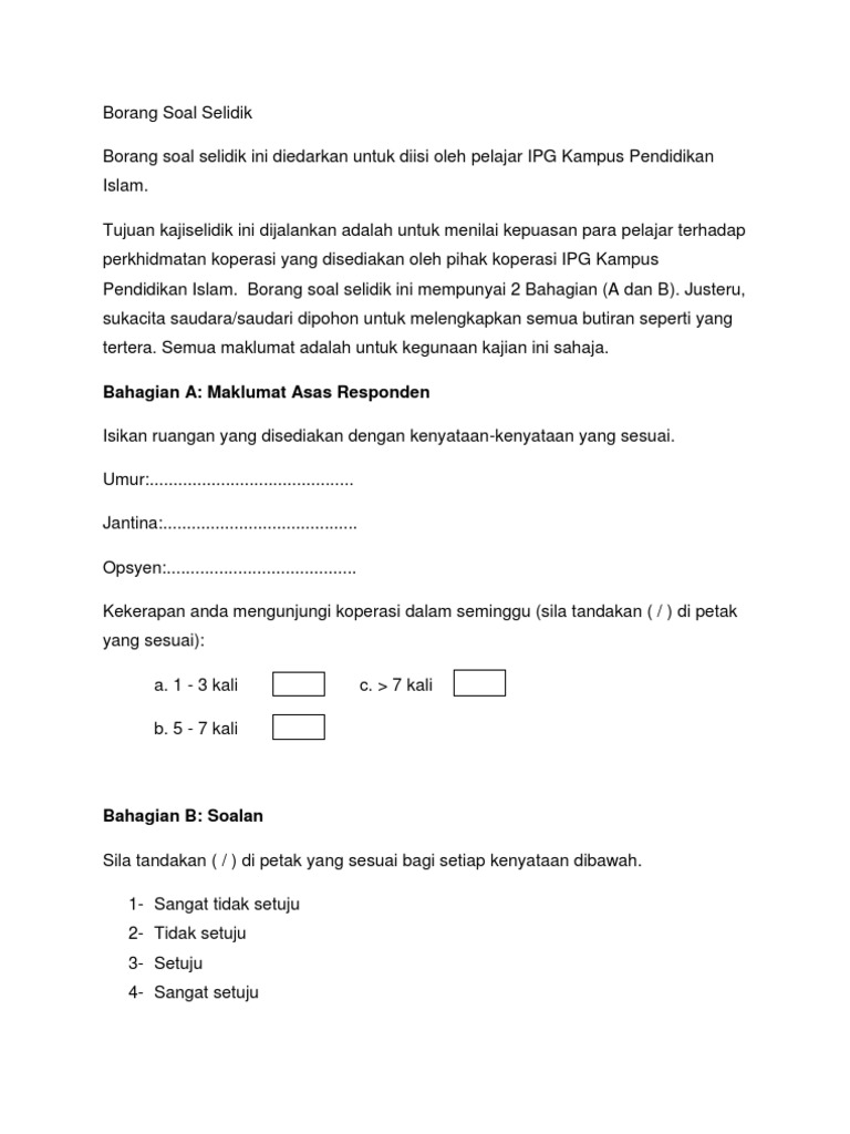 Borang Soal Selidik Perkhidmatan Koperasi Ipgkpi Pdf