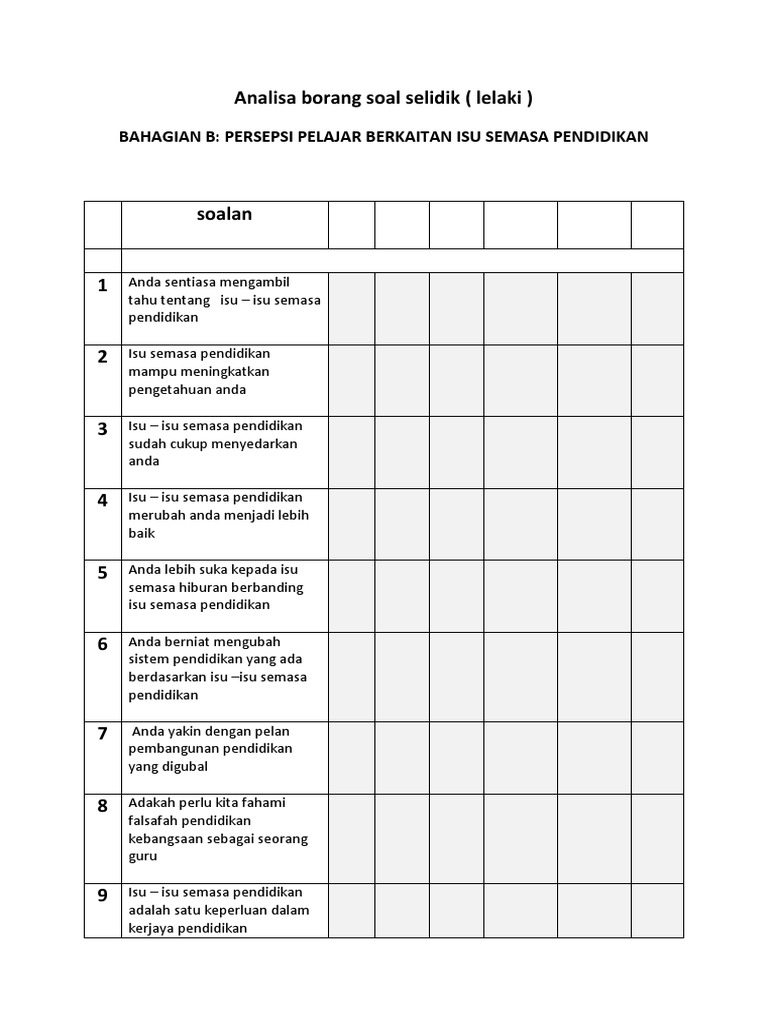 Borang Soal Selidik Kesediaan Peminpin Sekolah PAK21. Pada era globalisasi ini Malaysia mempunyai banyak jenis. Aras bahasa sesuai dgn responden 6.
