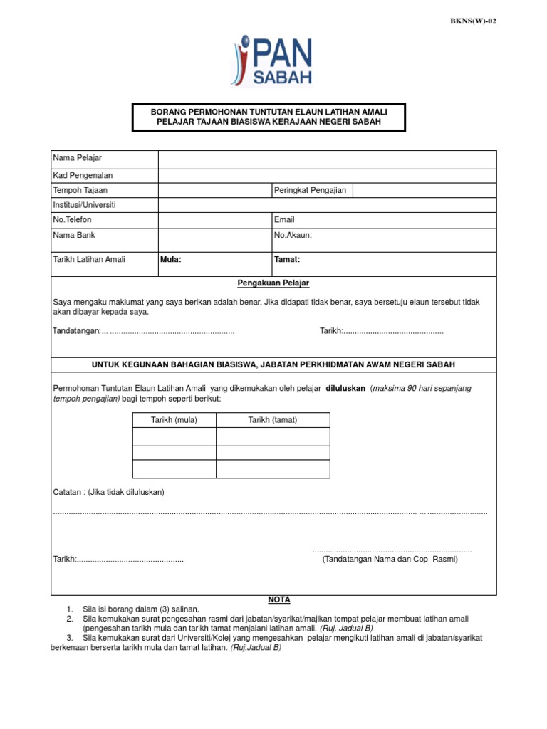 Borang Permohonan Tuntutan Elaun Latihan Amali Pelajar Tajaan Pdf Document