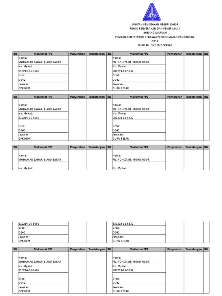Borang markah pbppp guru besar. Musim Penilaian Bersepadu Pegawai Perkhidmatan Pendidikan PBPPP telah bermula. Borang cetakan maidam borang maklum balas pelanggan hospital borang ak52 lampiran 6 8 borang pendaftaran pekerja perkeso borang 2 borang pembatalan ptptn terbaru borang akta rahsia rasmi 1972 doc borang pendaftaran pasukan mssm r02 borang pdpc skpmg2 2018. Terima kasih atas jasa baik Puan Saharah.