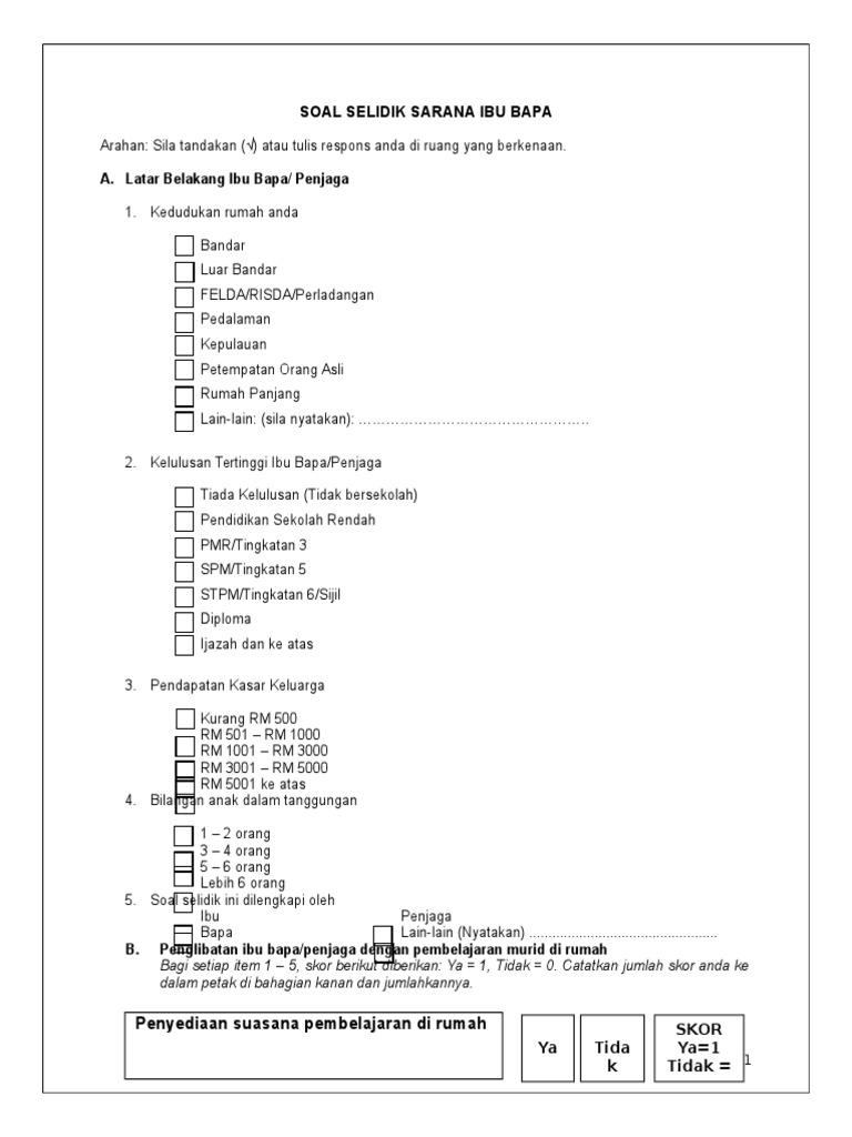 Borang Soal Selidik Sarana Ibu Bapa Pdf